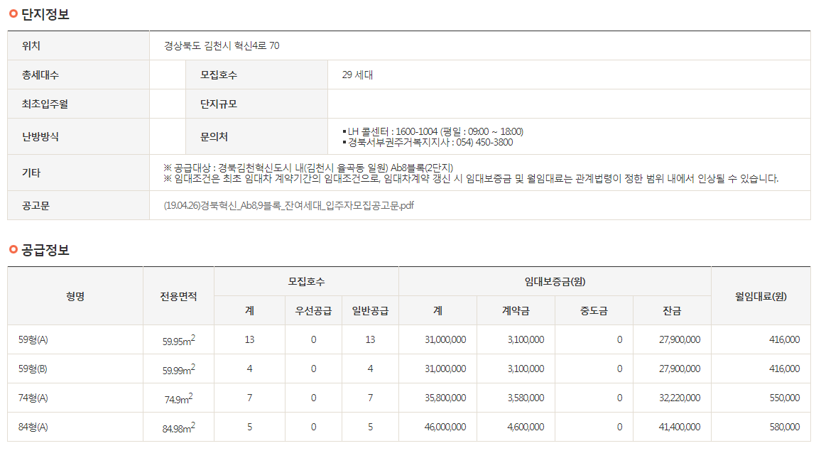 완화된 입주조건으로 2020년 4월29일까지 잔여물량을 털려고 공고까지 냈었는데