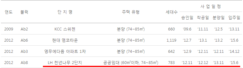 김천 혁신도시에 위치한 공공임대 천년나무의 경우