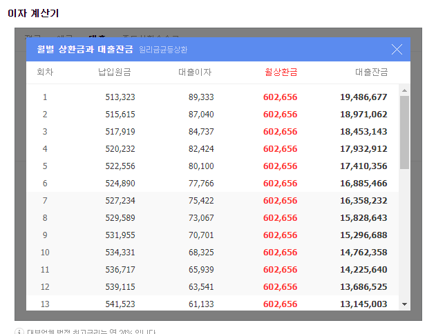 대출 이자 계산기 다시 돌려 봄