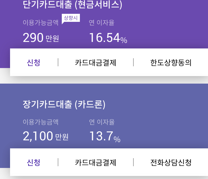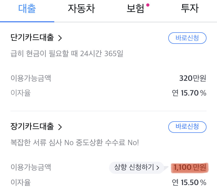 신한카드 단기카드대출 한도가 줄어듬 -_-???