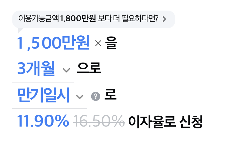 인터넷으로 대출 신청할 시 이자율이 10.90%인데
