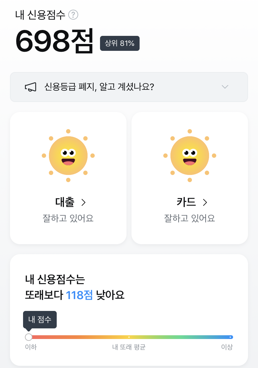 그 후, 신용도를 등급이 아닌 점수로 매기기 시작해서 현재 837점