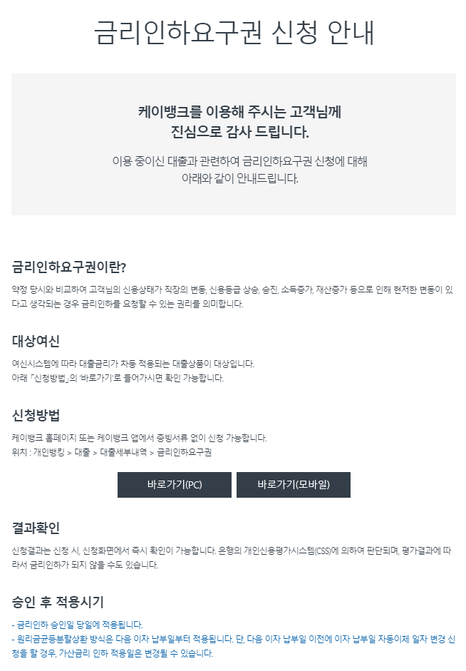 k뱅크 대출 금리 인하 요구권 관련 메일이 두둥