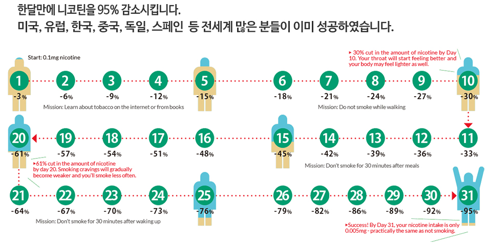 서서히 니코틴을 감소시키기 때문에 금단현상이 없다고 하네요
