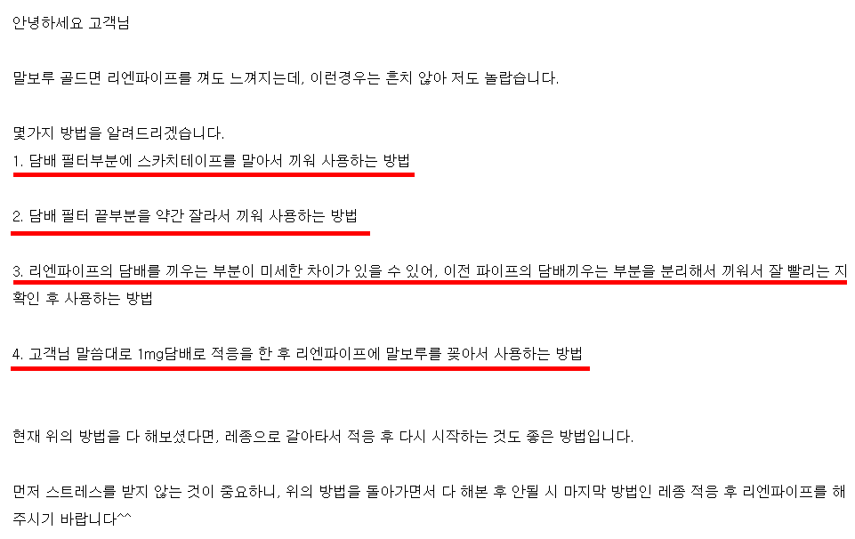 기존에 피던 담배를 계속 피우되 리엔 파이프만 끼워서 사용