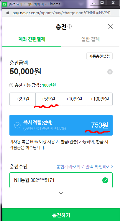 5만원 이상 충전하면 충전금액의 1.5%를 바로 적립해주니 ~