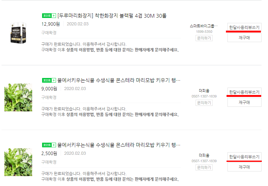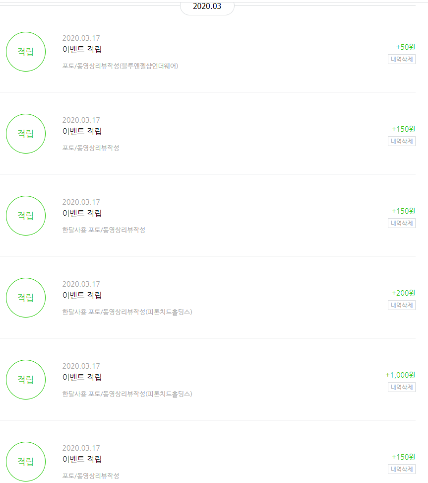 아쉽게도 아래항목들은 한달리뷰 포인트를 안 주더라는 ㅋㅋ