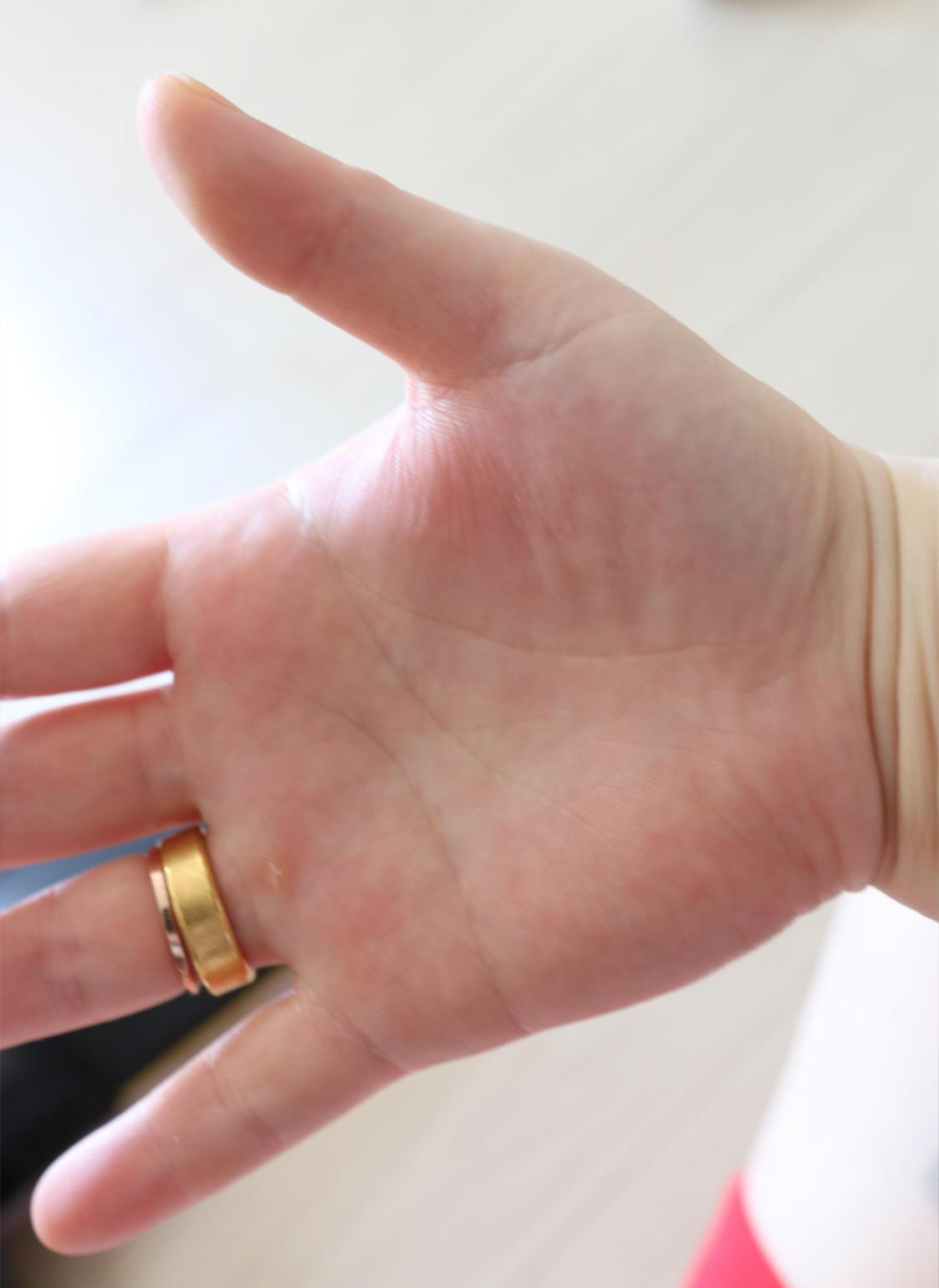 엄지 부근이 붉어지고