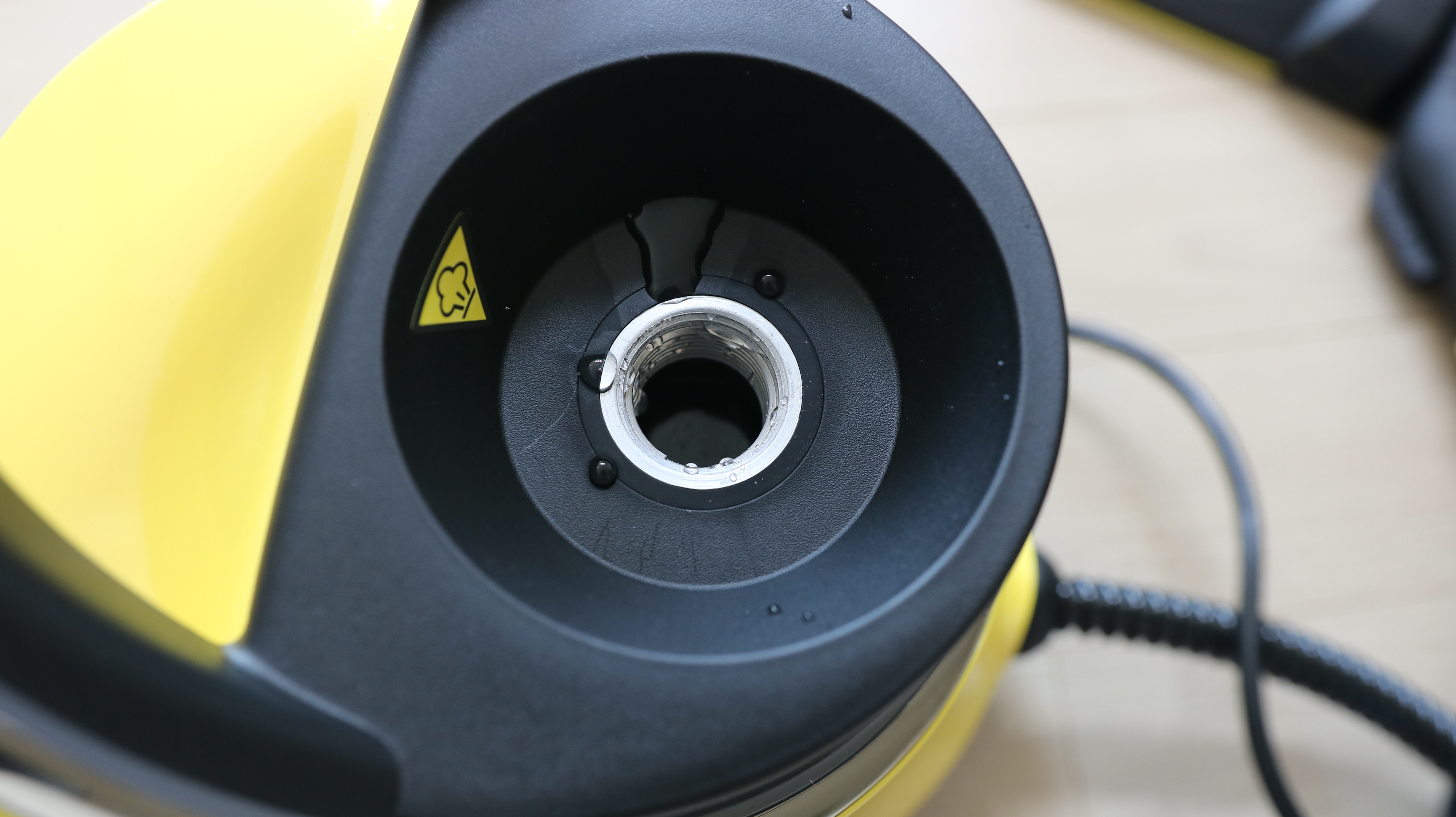 v. 손잡이에 버튼을 눌러야 스팀 분사가 되는데 (자동 아님)