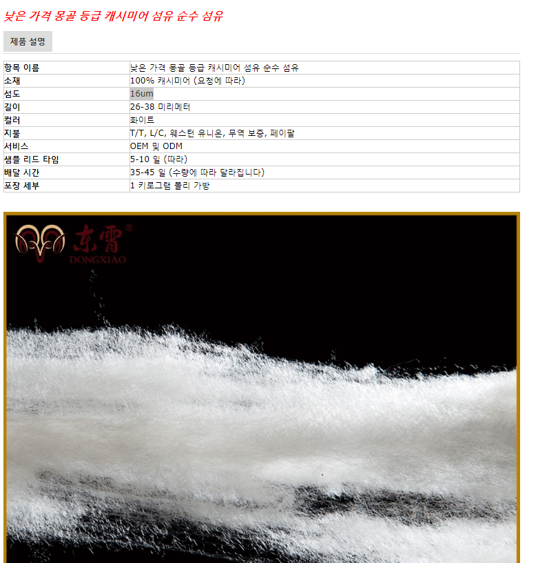값이 지나치게 싼 캐시미어의 경우 대부분 이런 단모의 낮은 등급 캐시미어를 사용한다고요