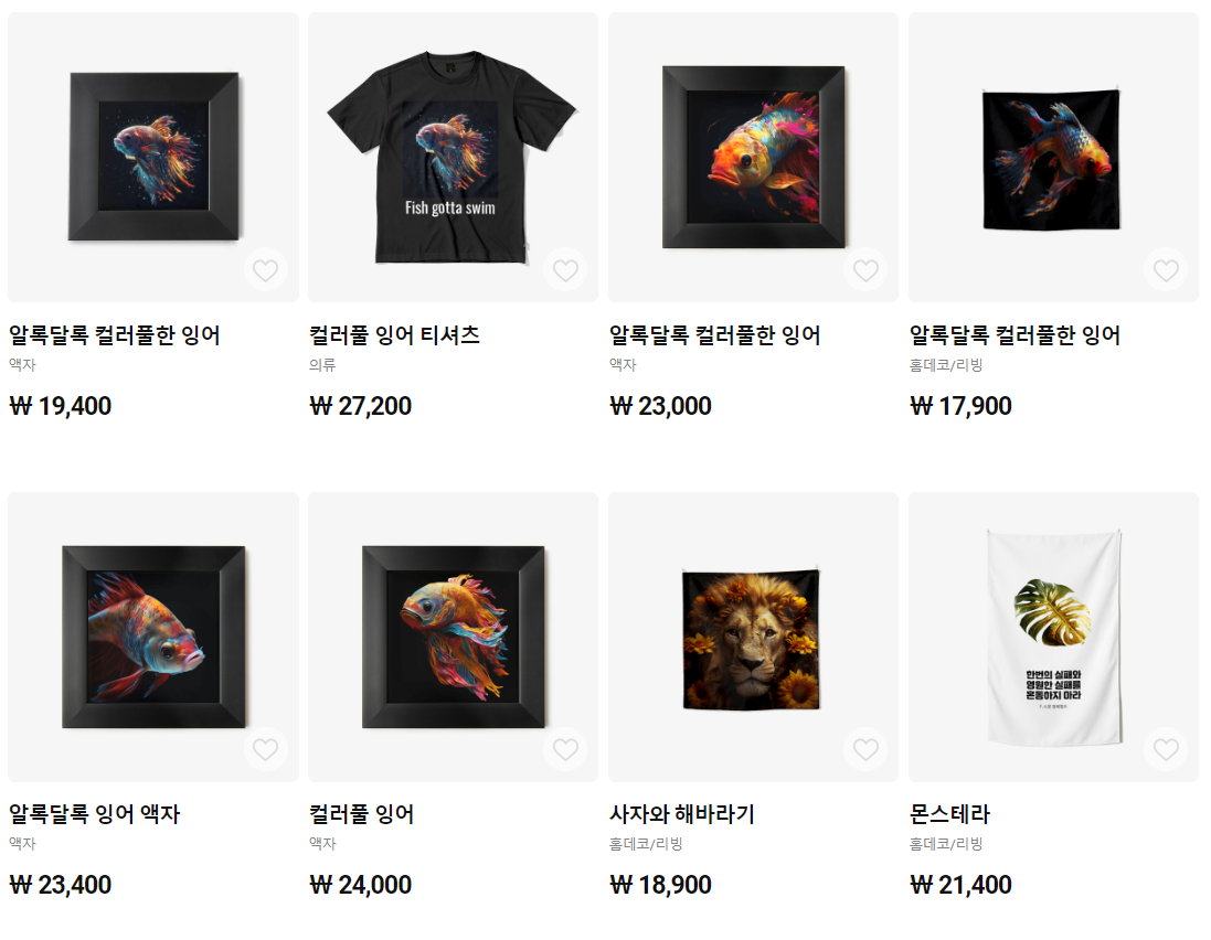 마플샵이나 오라운드등등에 다양한 상품에 ai디자인을 적용해서