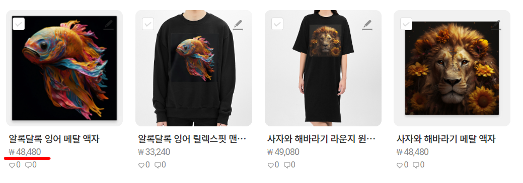 마플샵이나 오라운드등등에 다양한 상품에 ai디자인을 적용해서
