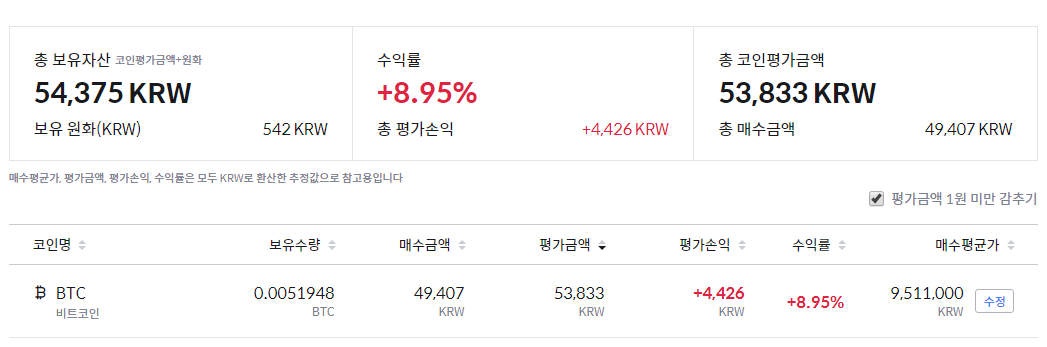가벼운 생각에 ㅋㅋ로또에 적립하지 않고, 비트코인에 5만원 넣고 바로 진입!!