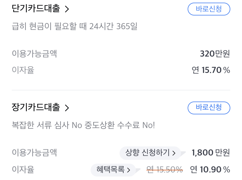 신한카드 단기카드대출 한도가 줄어듬 -_-???