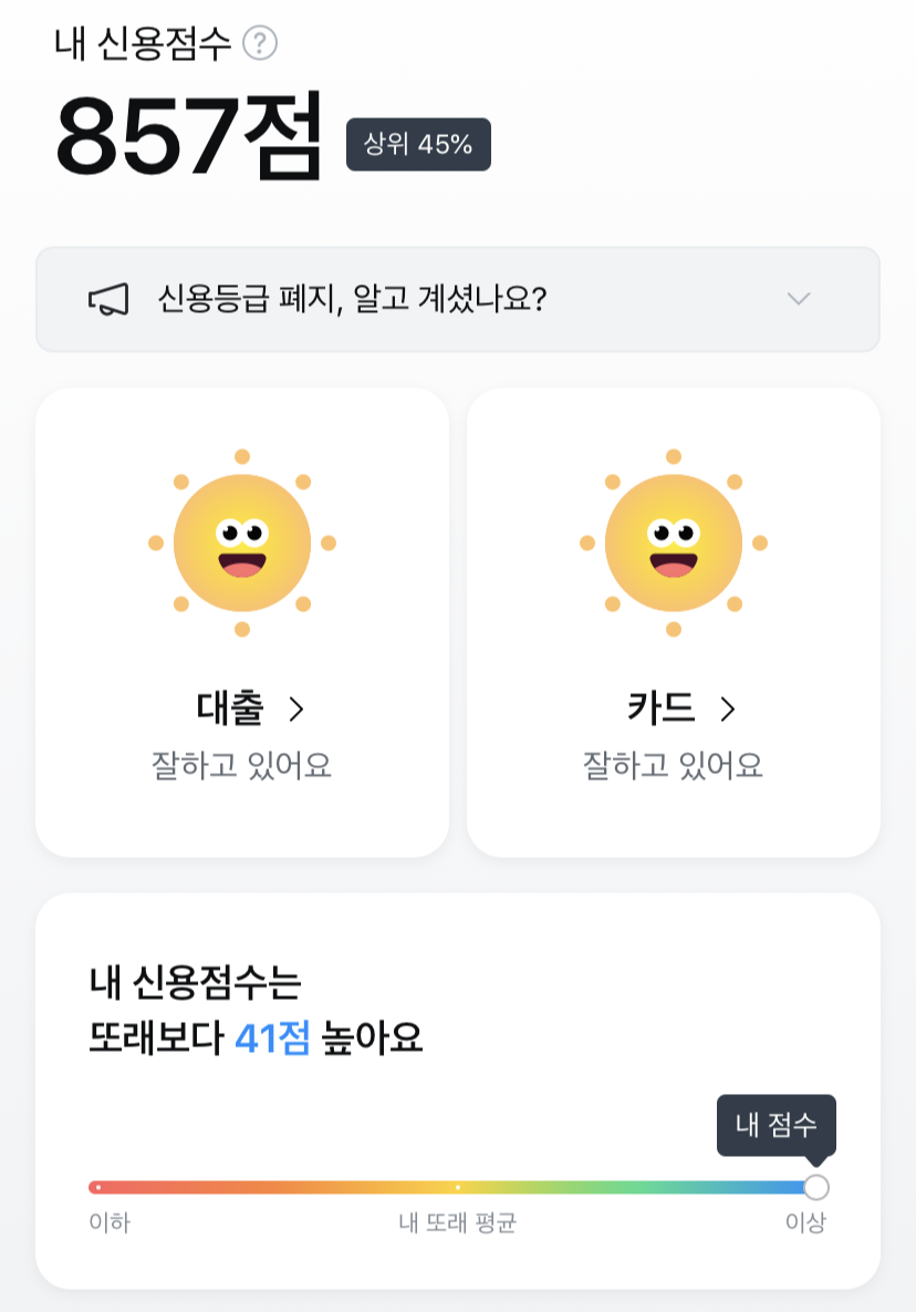 그 후, 신용도를 등급이 아닌 점수로 매기기 시작해서 현재 837점