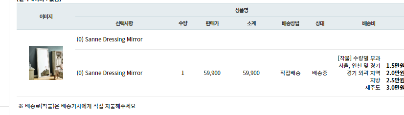 주문한 거울은 10월 26일 월요일 주문해서