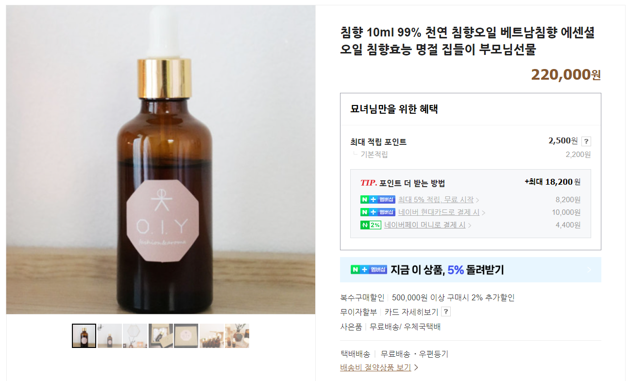 시중에 침향 오일로 검색하면 몇 제품 나오지 않는데