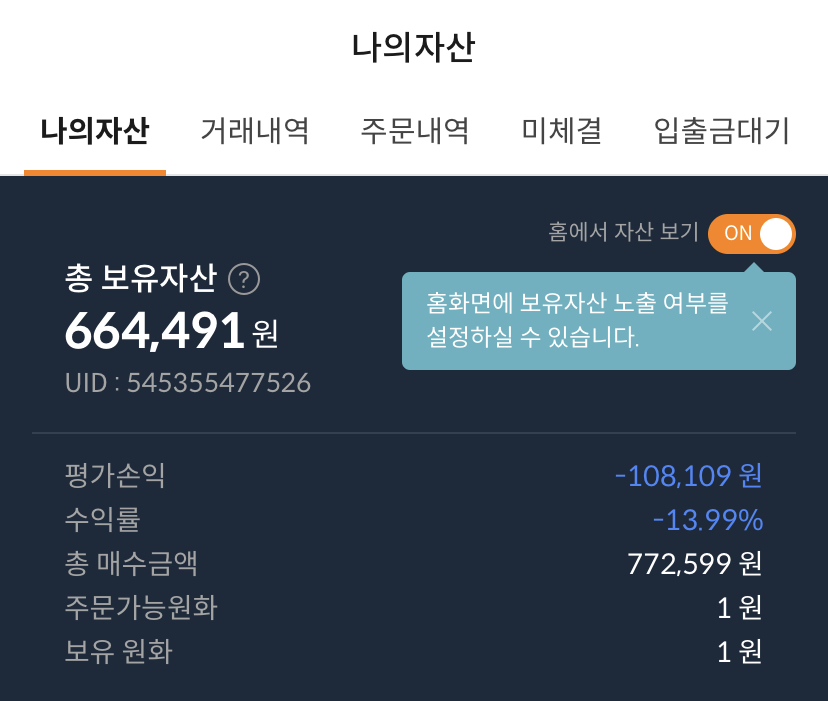 50만원 더 넣고, 15,000원 벌고 다행히 탈출