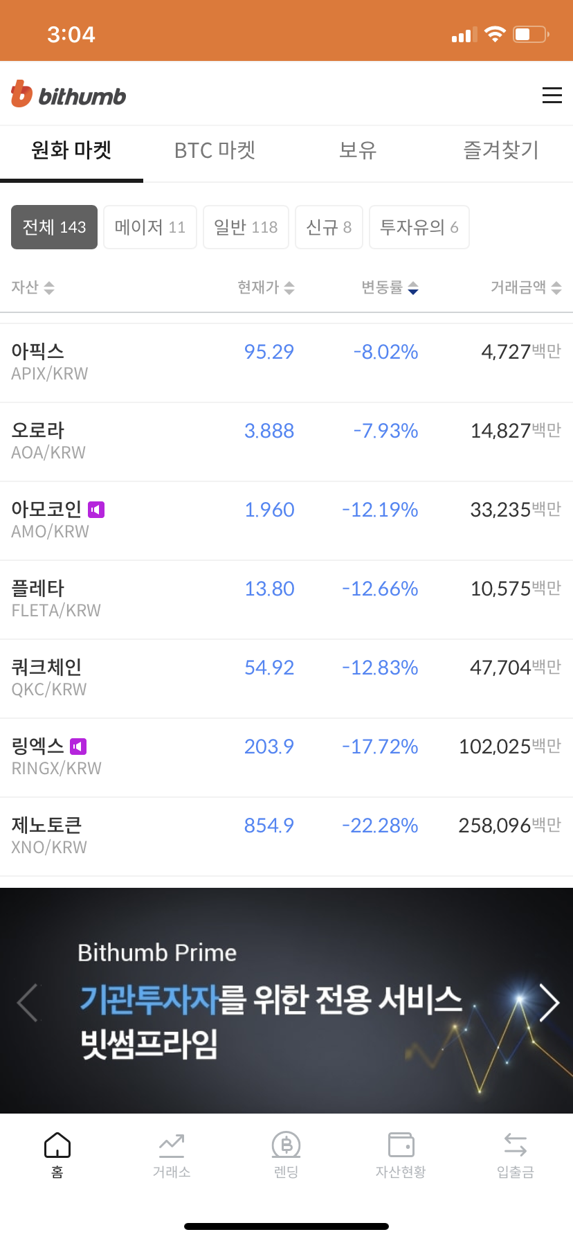 타 코인들도 저정도의 변동성을 보이는 거 같은데