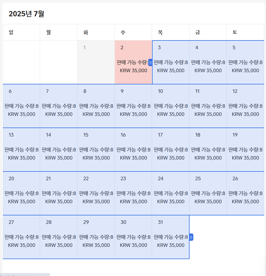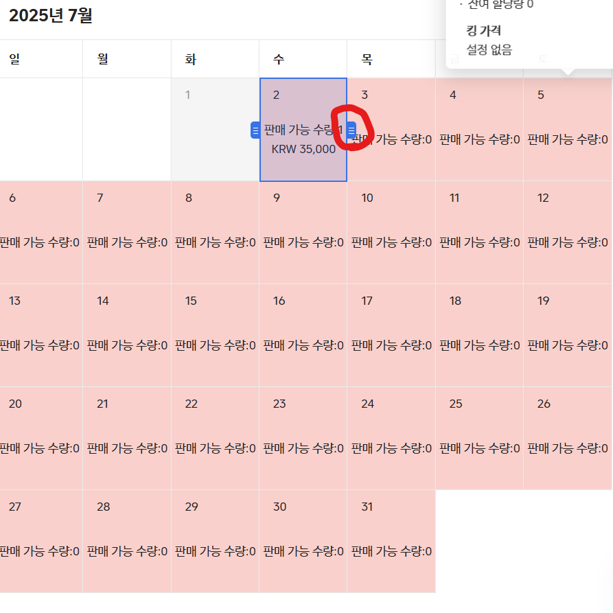 요금은 달력에서 별도 설정해줘야 하는 거 같더라구요 으으으읔