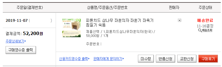 근데 구매한 좌훈 나무 의자의 경우 ㅠㅠ