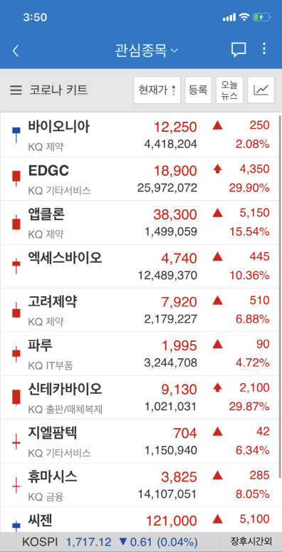EDGC는 6%될 때 씨젠이 안 오르길래 안 갔는데 상한 ㅠㅠ