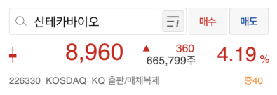 매도한 걸 다 신테카바이오 8,760에 추매 올인 74주