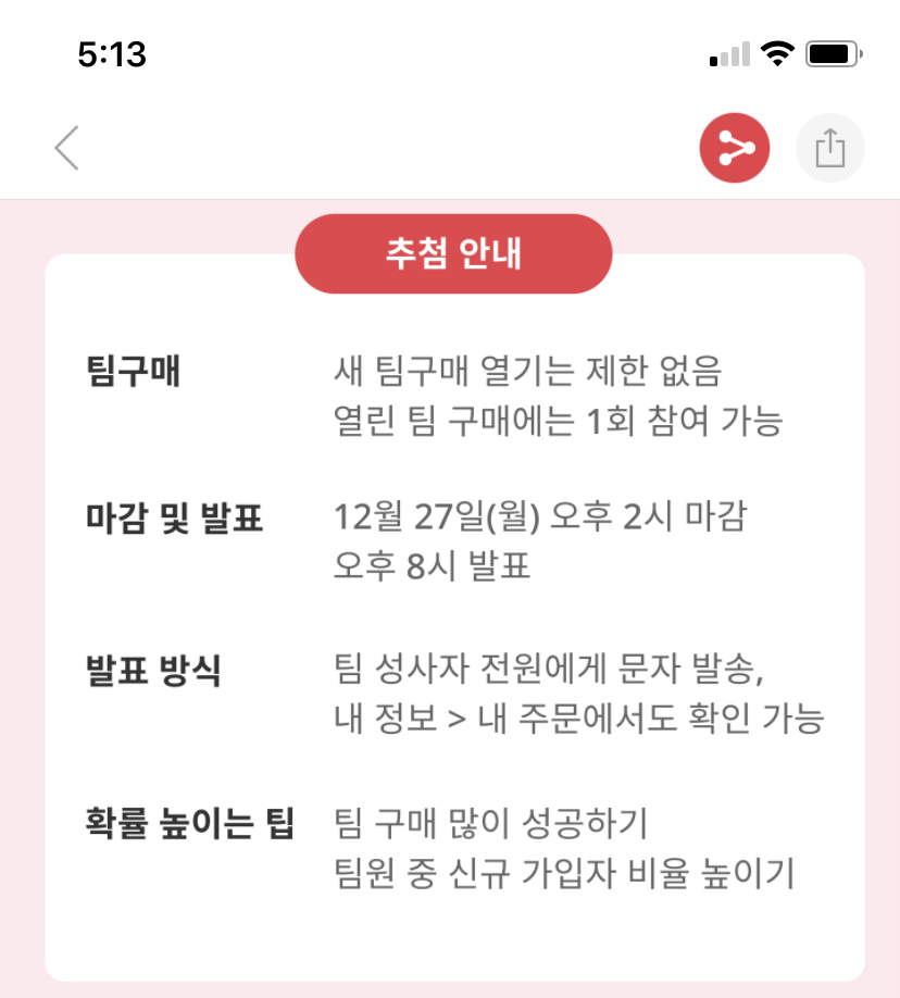 친구가 팀구매 보내서 보니 추첨제는