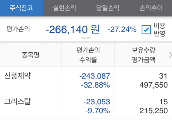신풍 + 크리스탈 주식 딱 2개 하는데