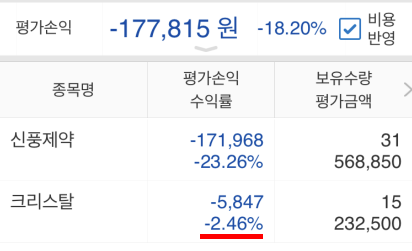 오늘은 왜 올라서 -2.46%가 된건지 멍하네