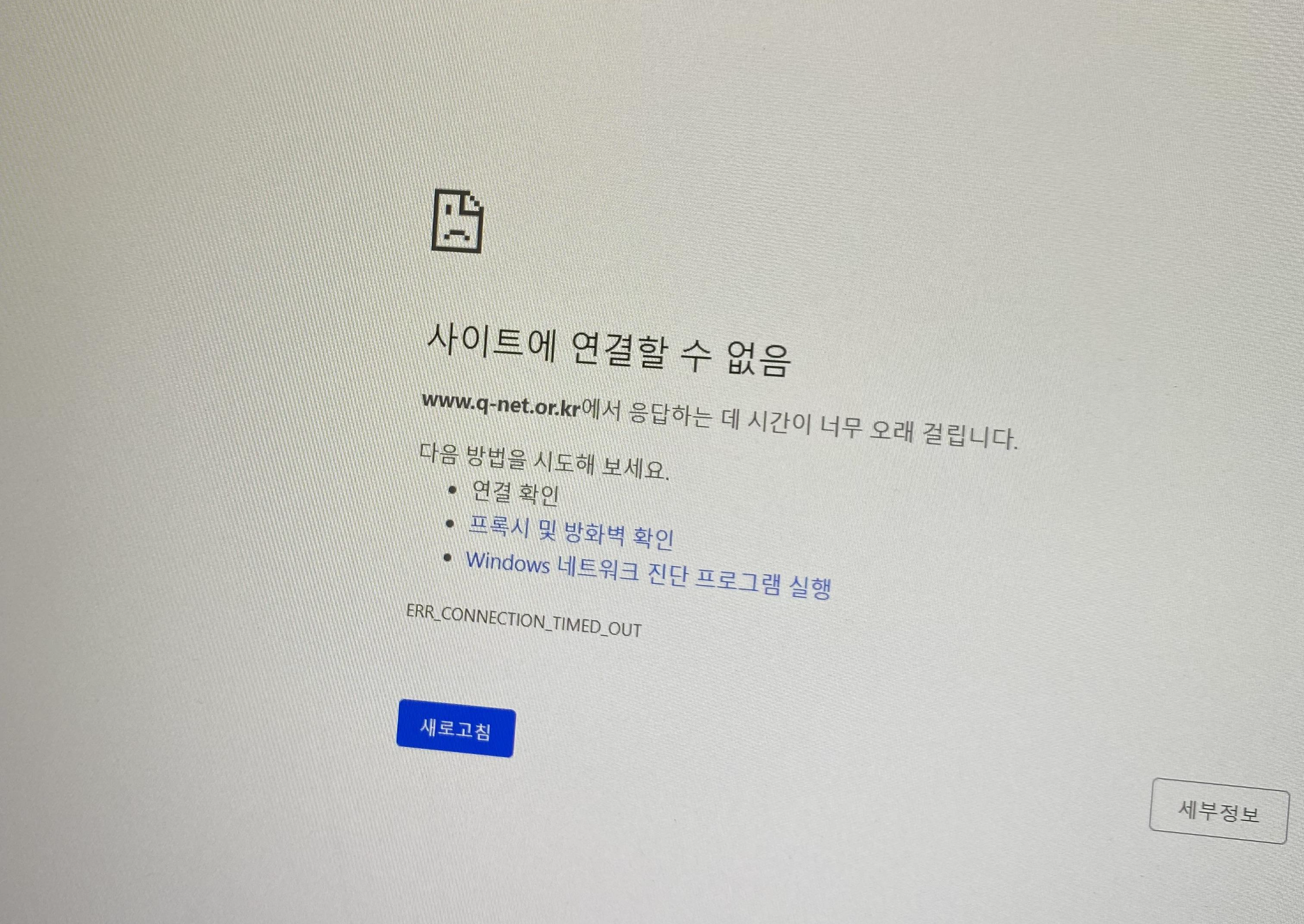 로딩 후, 또 사이트 연결할 수 없음