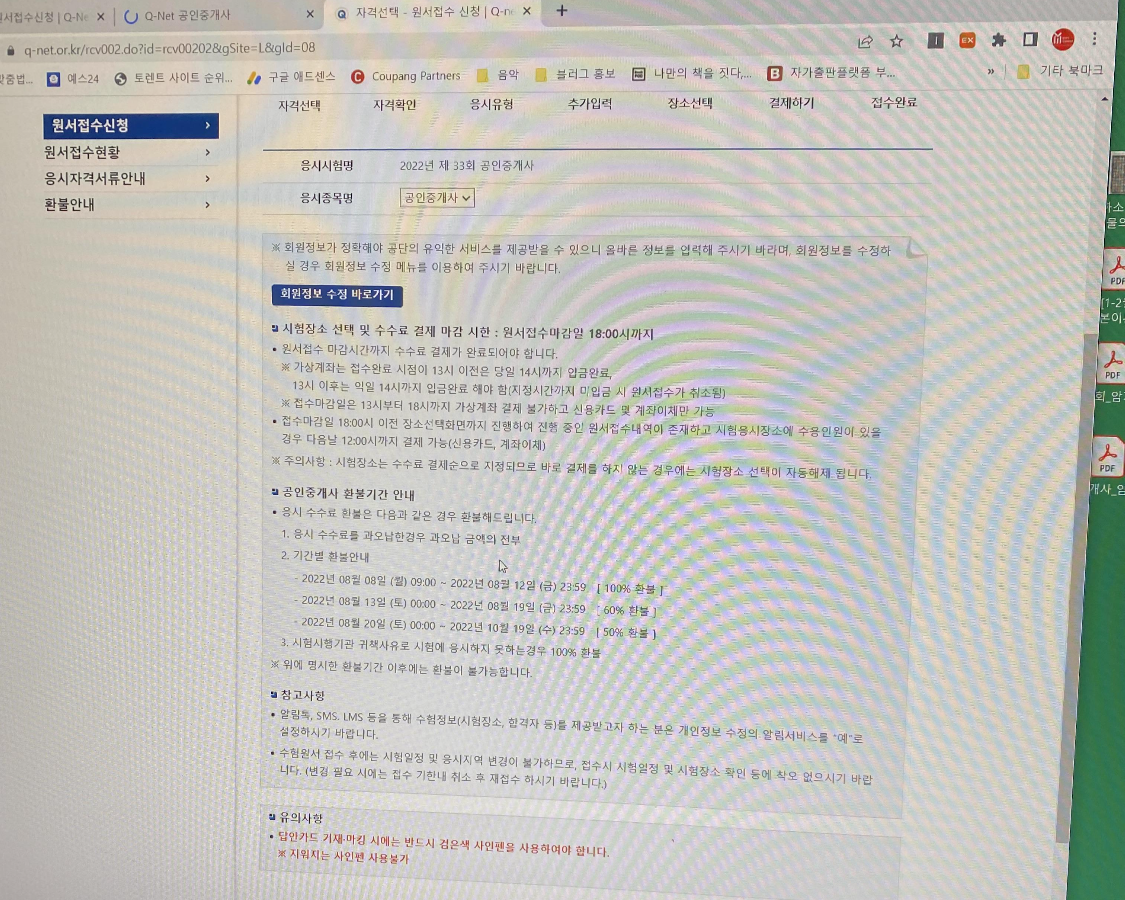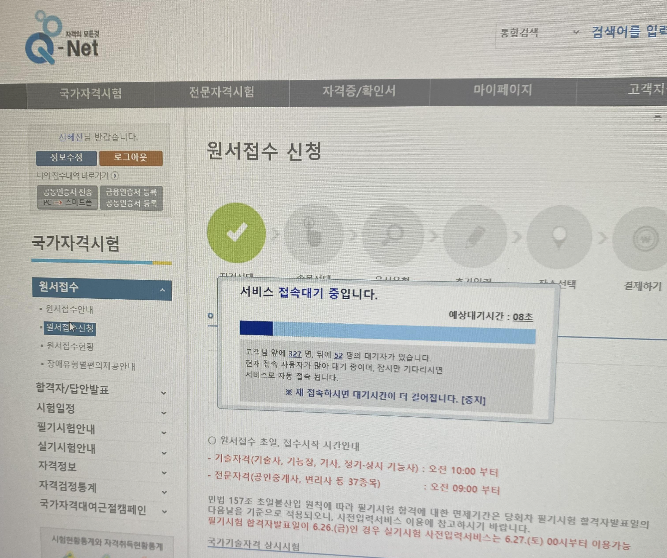접수시간인 9시 되자 마자 원서접수를 하기 위해 클릭클릭