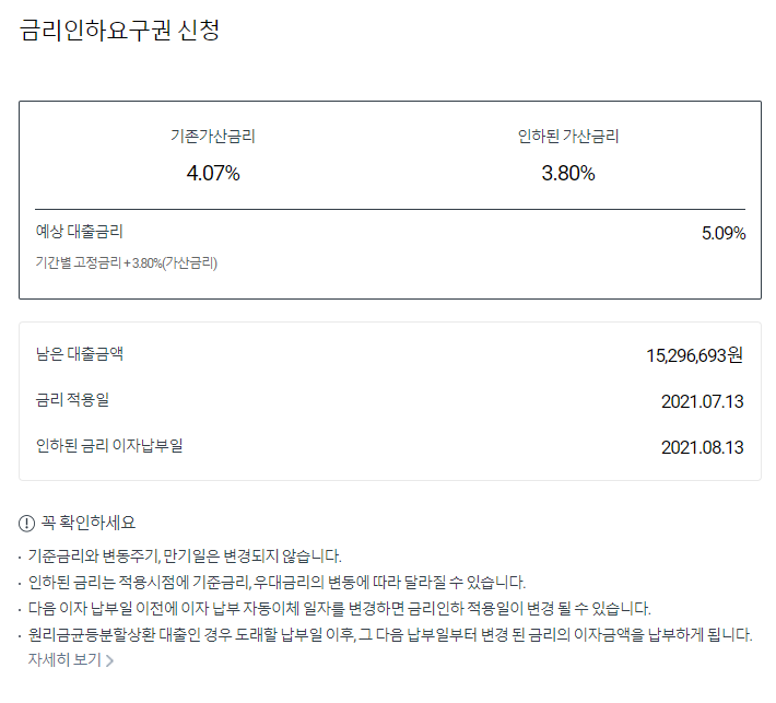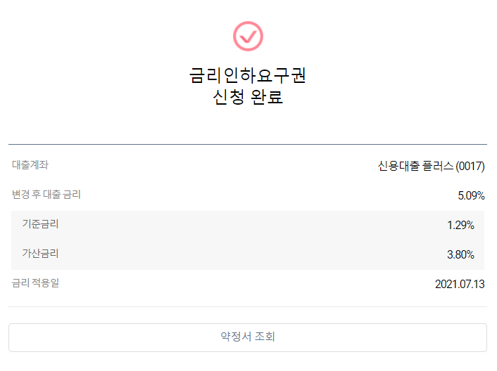 대출 금리 인하 요구권이 승인이 되면 대출 금리가 5.09%