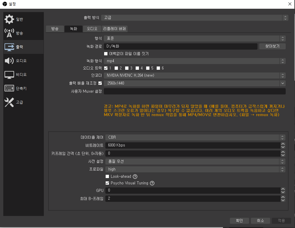 mp4로 저장되게 한 이유는 프리미어프로에서 바로 불러 들이려고 ㅠㅠ