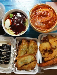 칠곡 석적 분식 배달 음식 배달집 옛날 분식 전문점 가격은 나쁘지 않은 듯~첨 시켜 먹어보는데 엄청나게 시킴 ㅋㅋㅋ 2만원치 -_- 6,000원 모듬 떡볶이 2,000원 야채김밥 4,000원 쫄면 2,000원 단호박튀김 (3~4개)2,000원 새우튀김 2개4,000원 수제 군 통만두 모듬 떡볶이에 라면 사리가 들어갔을 줄 미쳐 ㅠㅠ계란,치즈,오뎅,양배추,만두가 들어간 모듬 떡볶이맛은 평범 바삭바삭한 만두 맛남~~ 새우튀김과 단호박튀김좋아하는 튀김류라~~캬캬 라면 사리가 들어가 있는 줄 알았으면쫄면 안 시켰을건데 흑흑 맛은 먹을만 함.. 평범 야채 김밥우엉때문에 질기거나 딱딱하다고 느낄 수 있는데오득한 맛이 났음 개인적으로 ~먹을만 함~ 단무지와..고추 뭐시기..뭐지 ?ㅋㅋ 서비스로 온 식혜ㅋㅋ선물하트 라..
